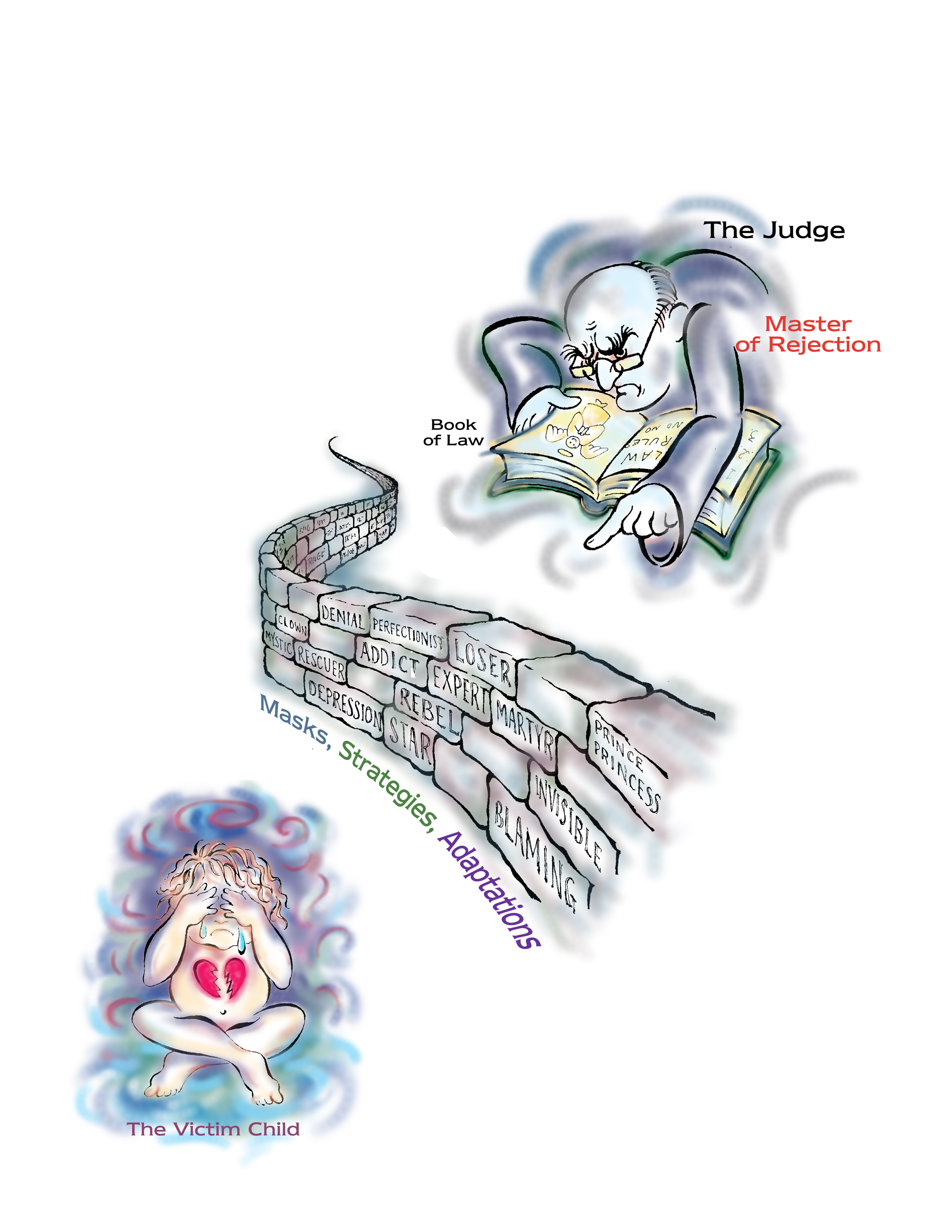 oles apprentices have found while doing this work. They are the Wall the victim child created between himself or herself and the Judge. Remember the rejections by the Judge are the energy that makes all the strategies and masks necessary. We are here to deny the power of the Judge and reclaim your integrity as who you came here to be, and the happiness you came here with. The strategies in this section are all pointers back to the Judge, and learning about them is an important part of your journey.